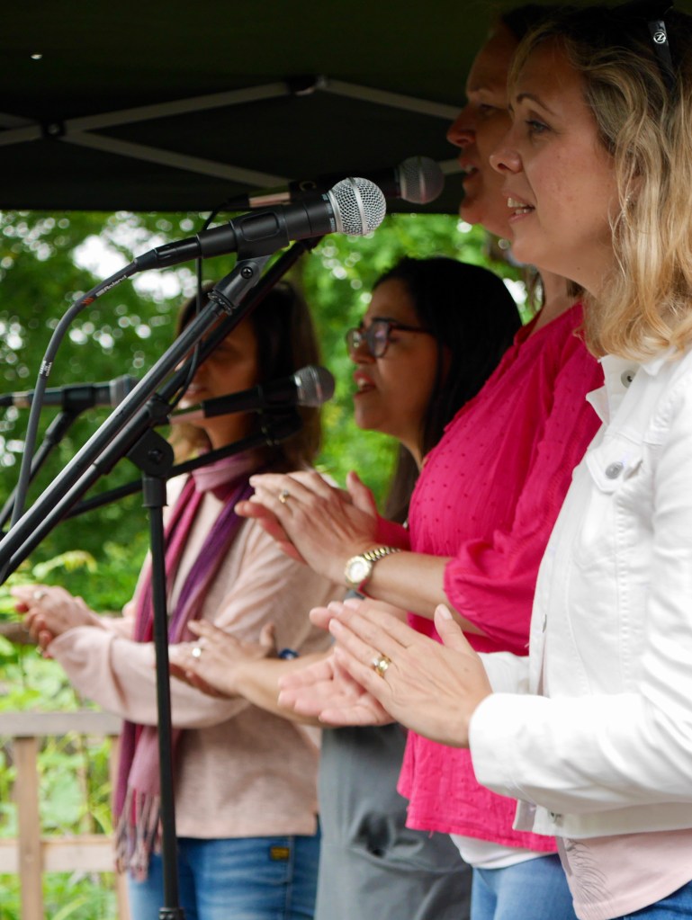 We provide our own microphones, stands, speakers, and mixing desk … and even a gazebo if it’s pouring with rain!